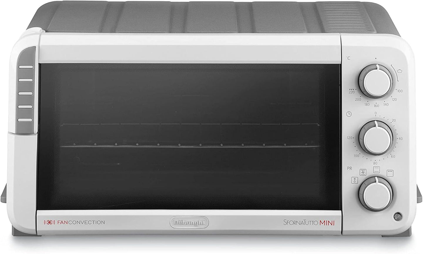 De'Longhi EO12512.WG Sfornatutto Mini, Forno elettrico,Capacità 12L,5 Funzioni di Cottura, Timer con Spegnimento automatico, Friggitrice ad Aria,Doppia Porta in Vetro,1400W, Bianco/Grigio |